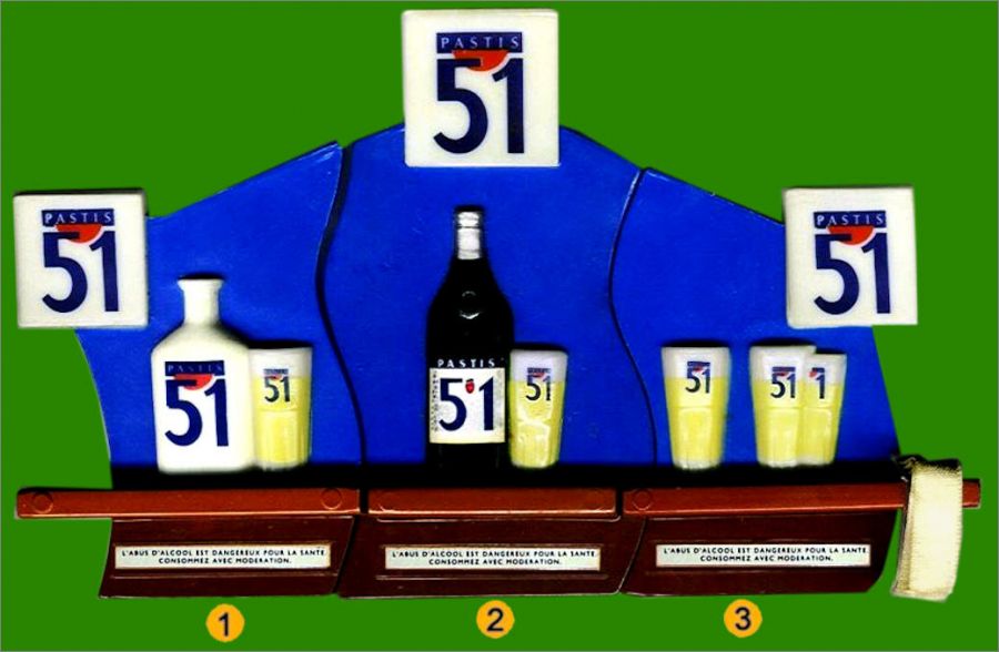 Pastis 51 : 1 à 3 (Suivre la numérotation sur l'image)