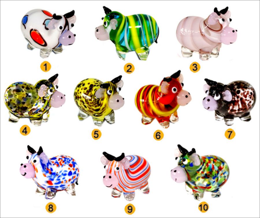 Les Vaches - 10 fèves en verre translucides - Clamecy - 2022