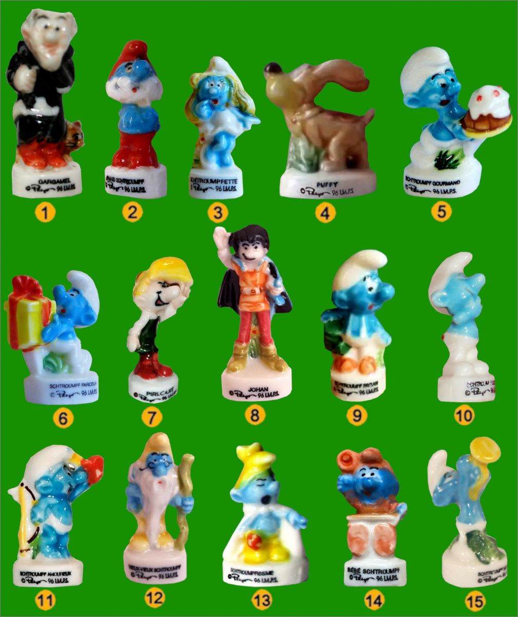 Les schtroumpfs 1996 - Peyo - 15 Fèves brillantes - Alcara