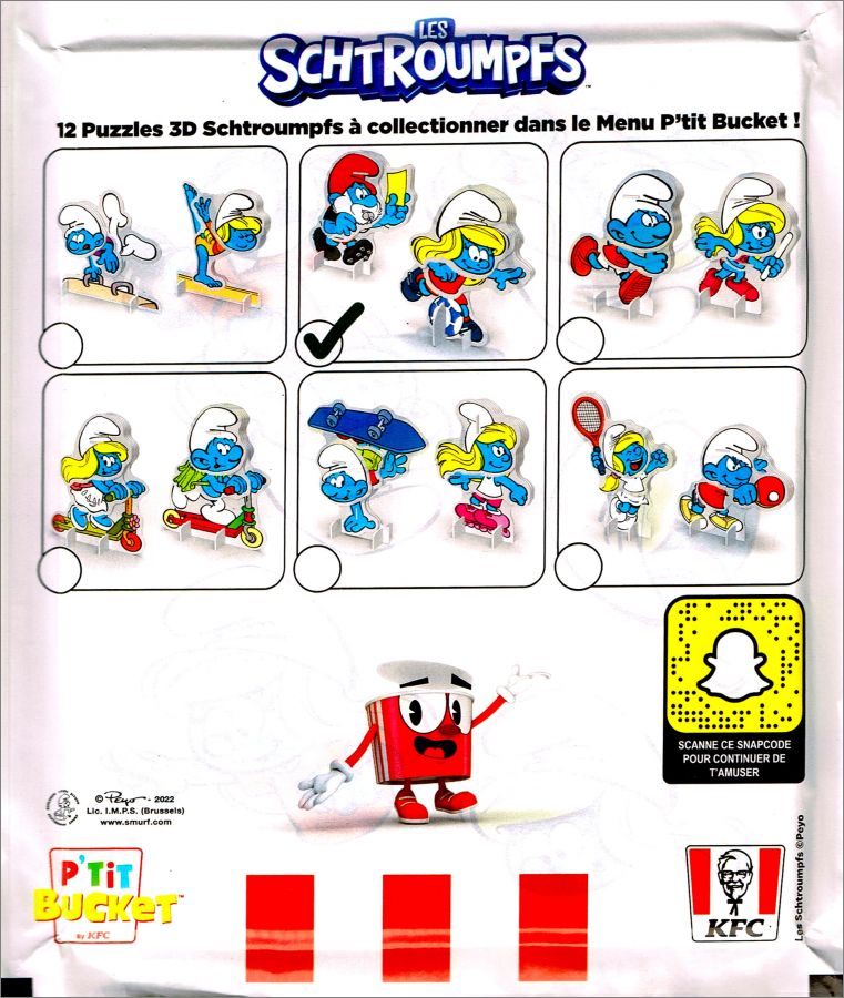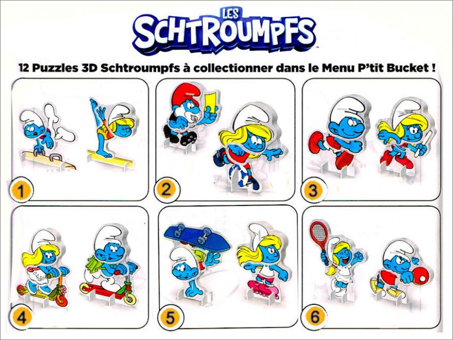 Les Sctroumpfs -12 (6 x 2) Puzzles 3D P'tit Bucket KFC 2022