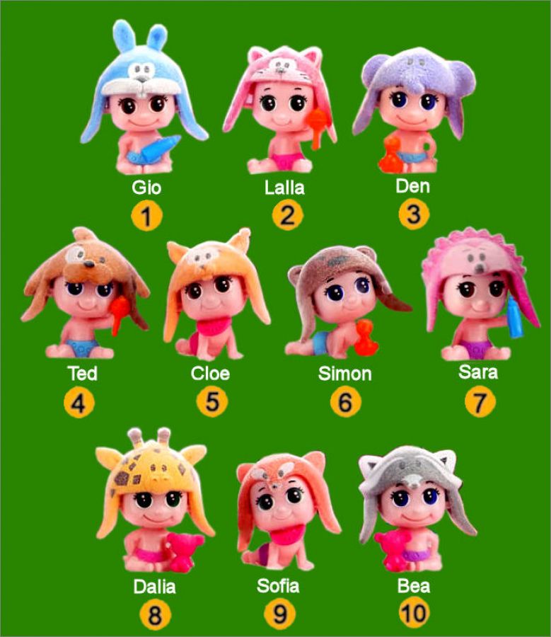 Une pochette contient : 1 figurine, un bonnet, un accessoire et un fascicule