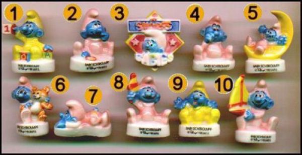 Baby Schtroumpfs - 10 Fèves brillantes - Peyo - Alcara 1999