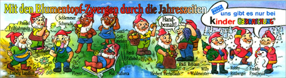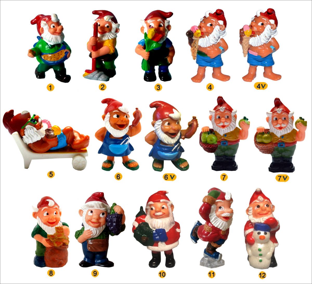 Les Nains à travers les 4 Saisons - Kinder surprise - 1998Les figurines 10 et 12 ont été rééditées en 1996 en allemagne