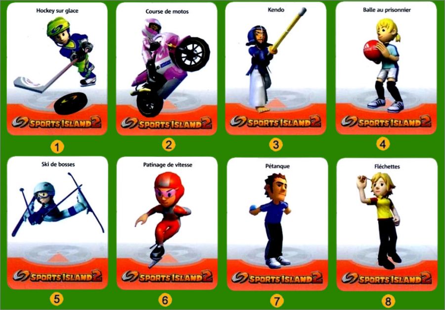 Collection d'une planche de 8 magnets sortie à l'occasion de la sortie du jeu Sports Island 2 sur la Nintendo Wii