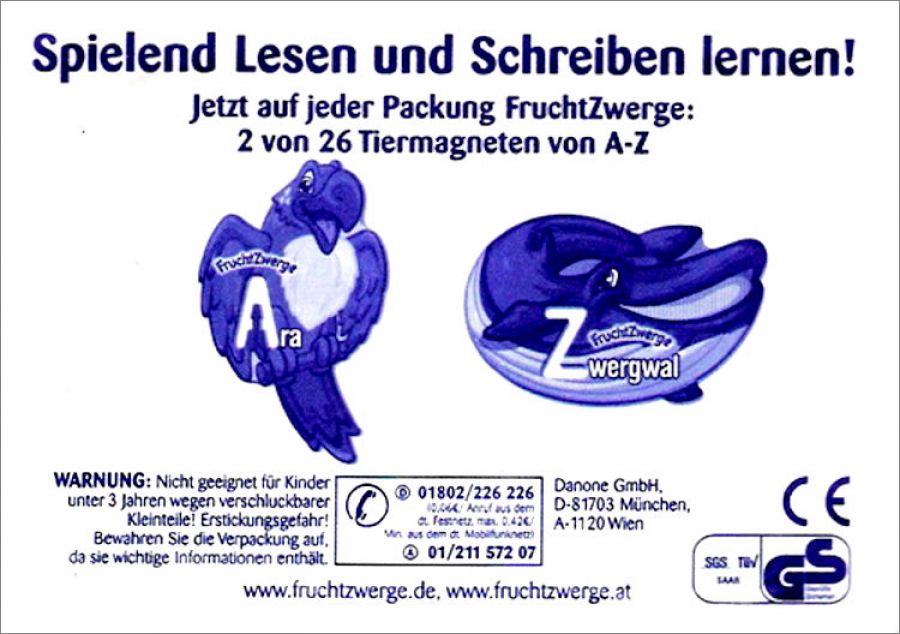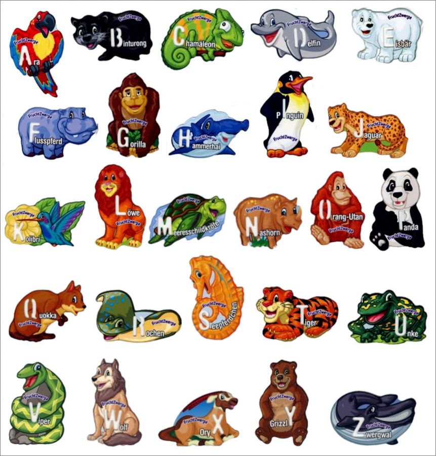 Animaux Zoo - 26 magnets FruchtZwerge Danone 2010 Allemagne