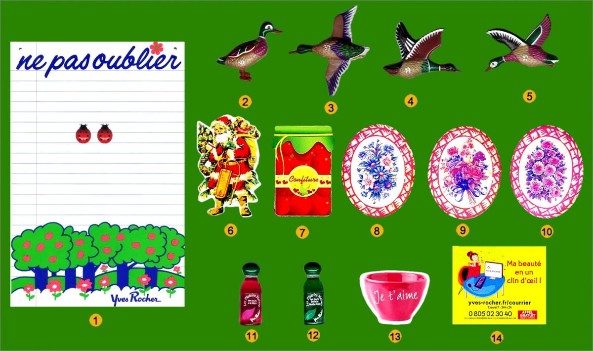 Yves Rocher : 1 à 14 (Suivre la numérotation sur l'image)