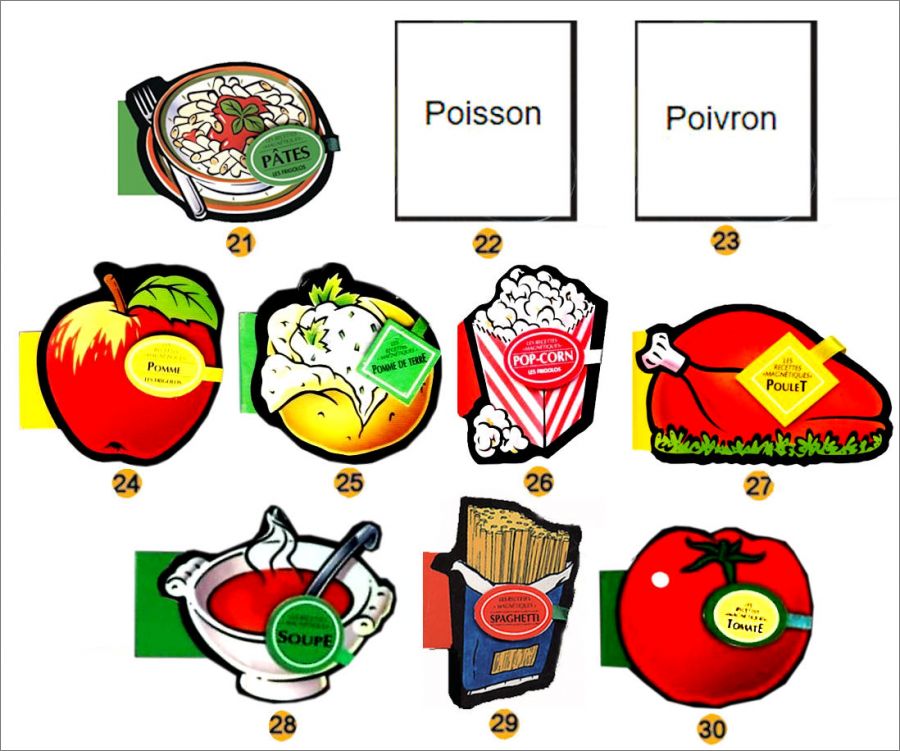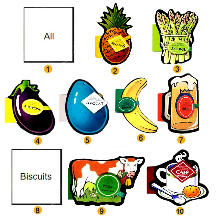 Ils nous manque le visuel des magnets Ail, Biscuits, Champignons, poisson, poivron.si vous en possédez, merci de bien vouloir nous les fournir Otoh