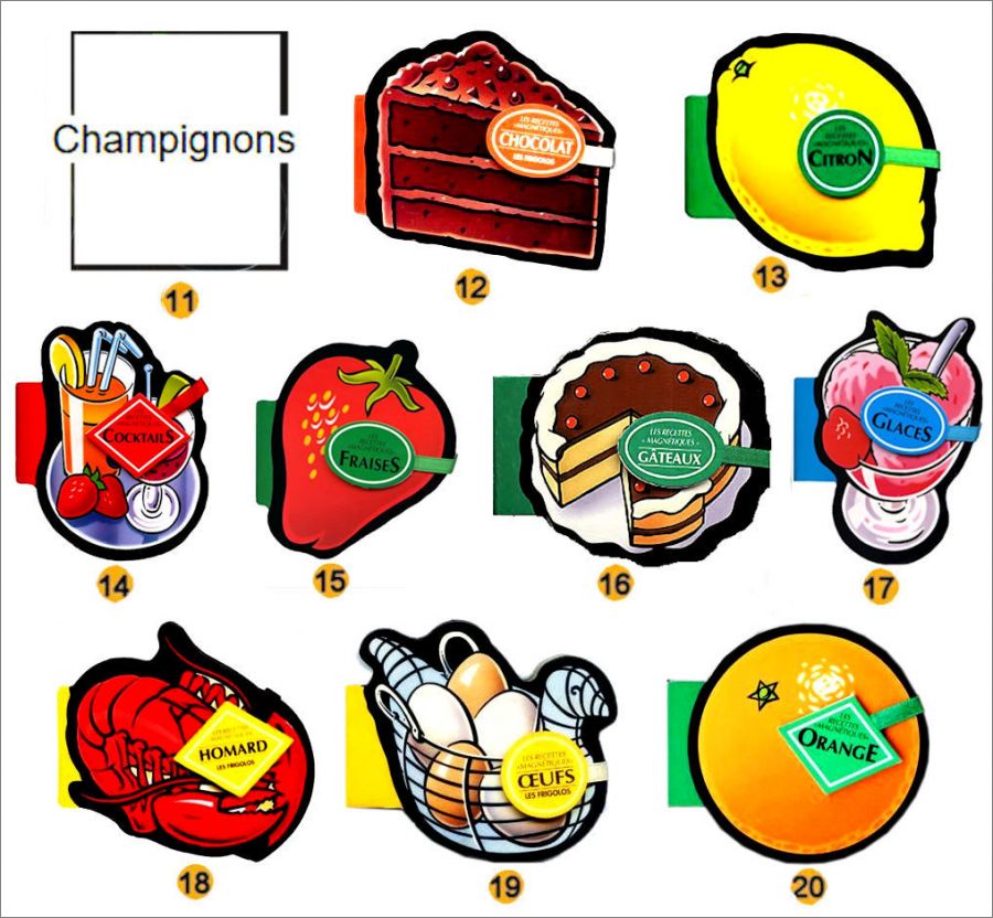 Collection : Les recettes Magnétiques Les frigolos 30 mini-livres magnets (voir la checklist) Référencement alphabétique par les 3 premières lettres du nom