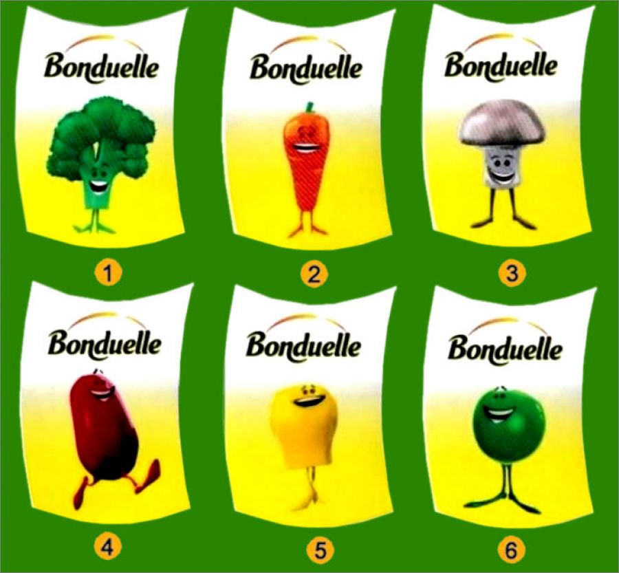 Bonduelle : 1 à 6 (Suivre la numérotation sur l'image)