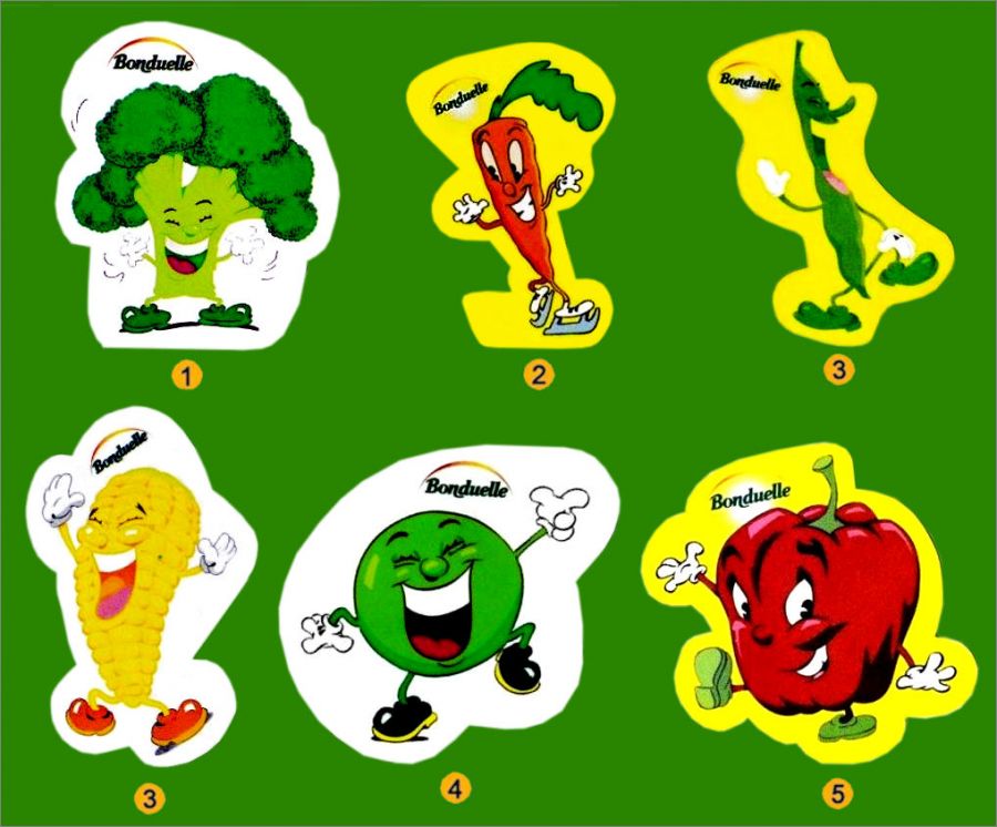 Bonduelle : 1 à 6 (Suivre la numérotation sur l'image)