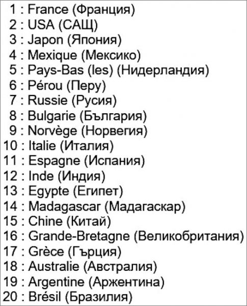 Danonino (Danone) : 1 à 20 (suivre la numérotation sur l'image)
