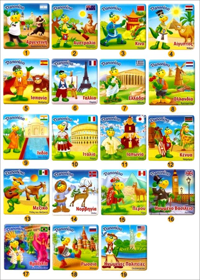 Pays - 19 Magnets Danonino Danone - 2010 - Grèce