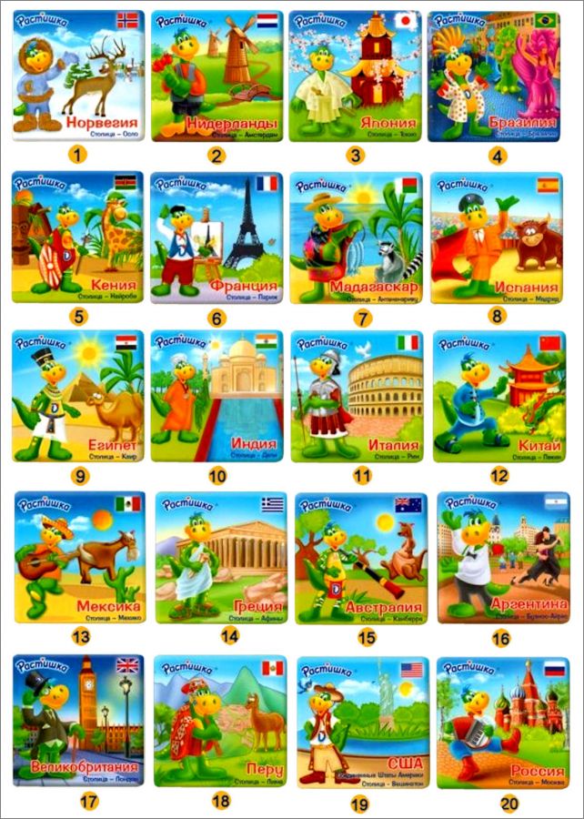 Rastishka (Danone) : 1 à 20 (suivre la numérotation sur l'image)