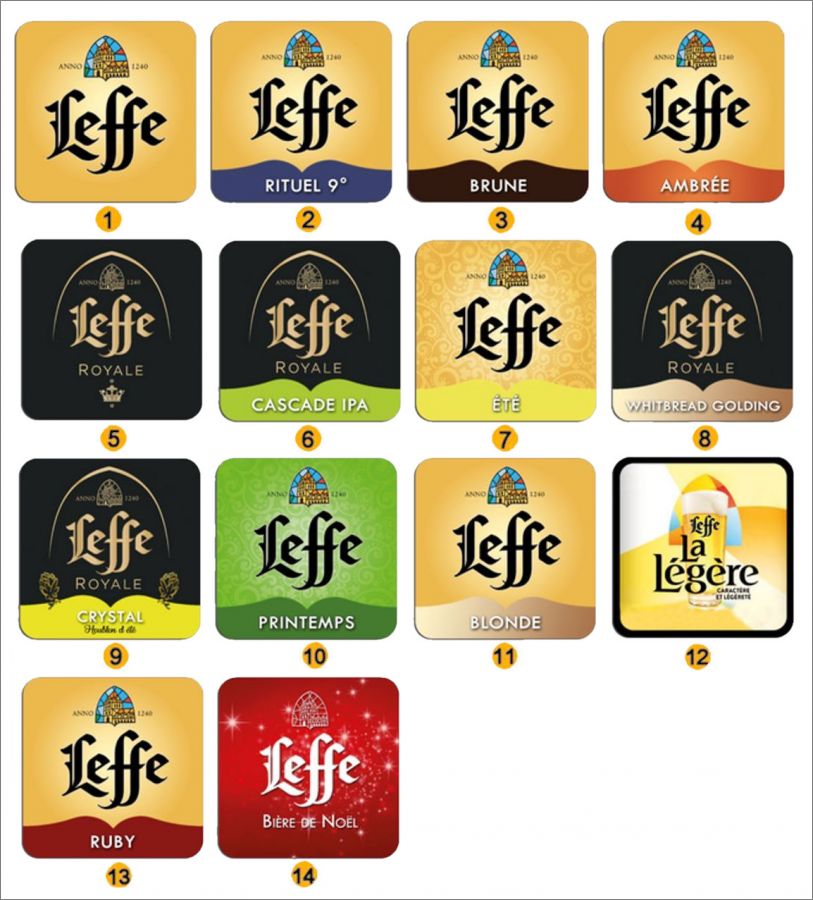 Leffe : 1 à 14 ( Suivre la numérotation sur l'image )