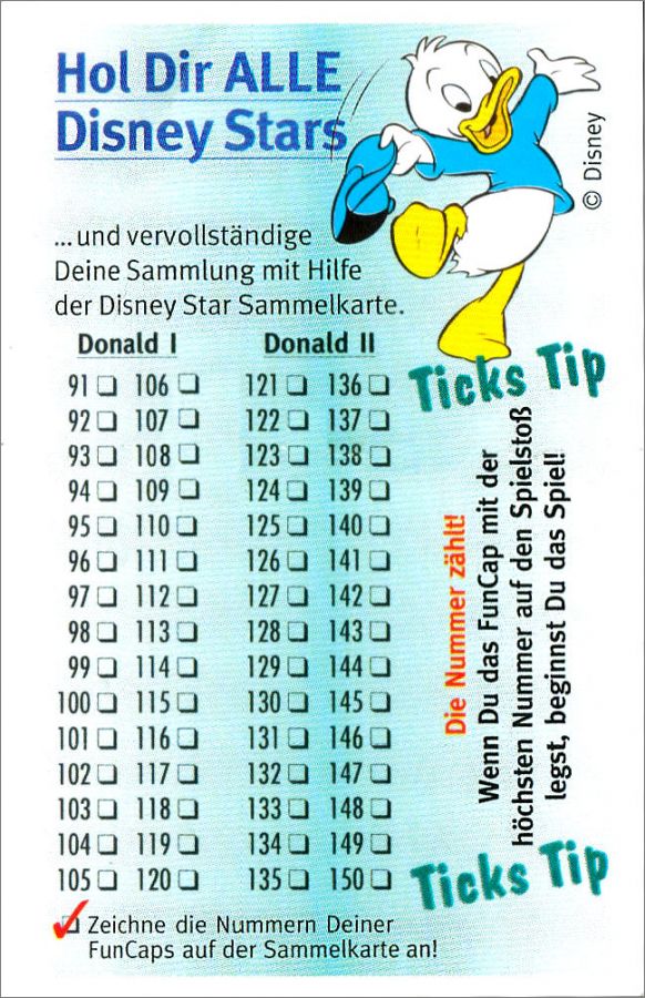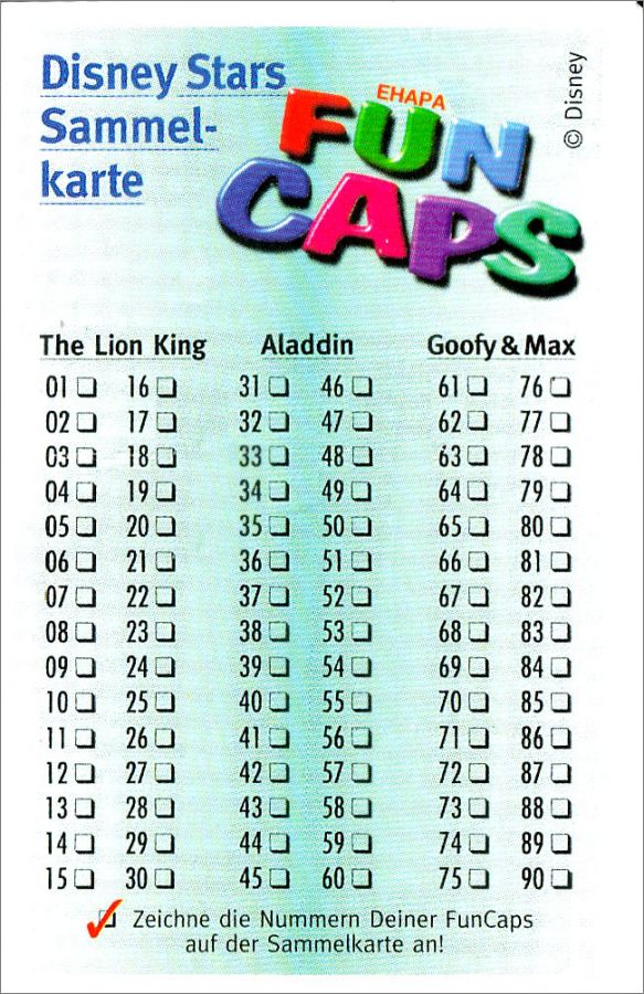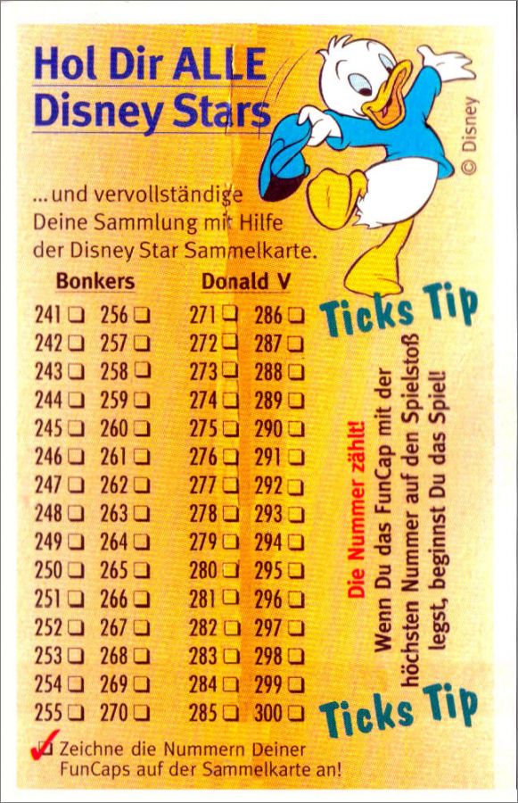 Disney Stars - Fun Caps - 300 Pogs - Ehapa 1994 Allemagne