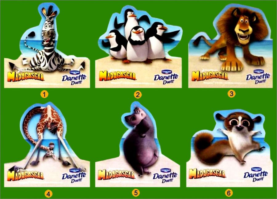 Madagascar - 6 Magnets - Danette Duett - Danone 2012 Hongrie