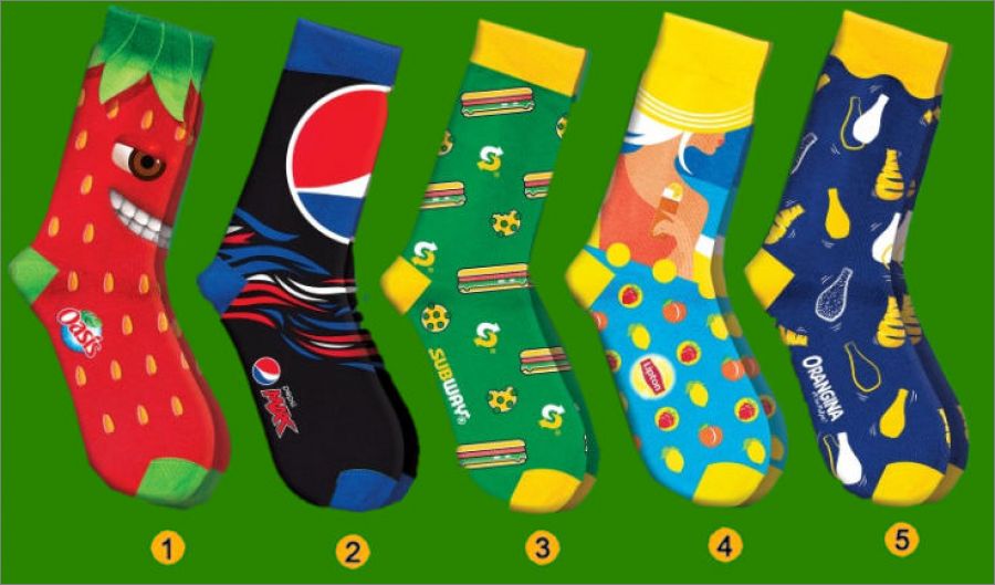 5 : Chaussettes bleu/jaune bouteilles Orangina