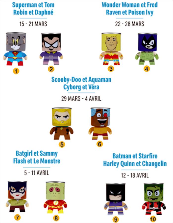 Du 15 mars au 18 avril 2023, découvrez dans le Happy Meal 10 figurines Warner Bros. à la tête interchangeable (personnages super stars des licences phares de Warner Bros).