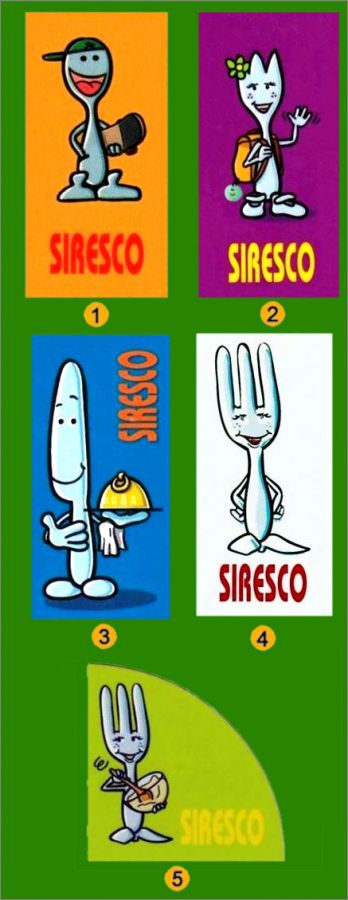 Il est écrit pour 2010 : « Chaque convive a reçu un magnet représentant un des personnages de la "famille Siresco” en forme de quart de cercle » édité à 43 000 exemplaires. On peut donc supposer qu'il y en a trois autres pour former le cercle. Pour 2011, il est écrit : « Une carte-menu est distribuée à chaque convive accompagnée d'un magnet ».