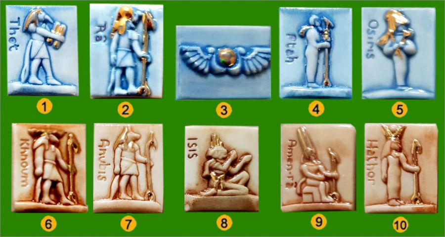 Dieux Rois d'Egypte - 10 Fèves plates filet or - Prime 1993