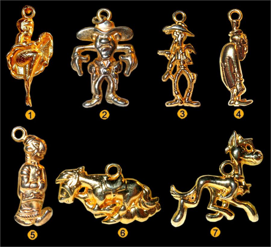 Lucky Luke - 7 fèves pendentifs dorées - Dargaud Morris 1990