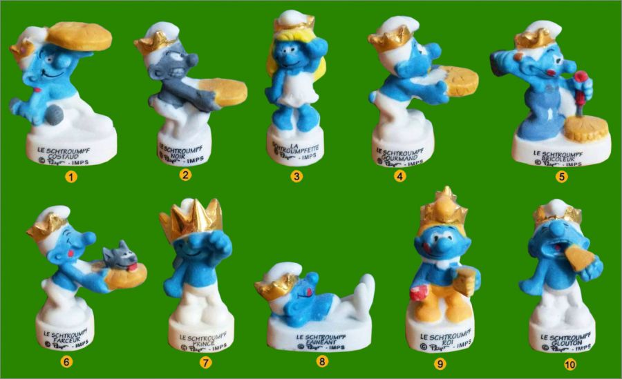 Epiphanie Schtroumpfs Peyo Fèves Brillantes (filet or) 2012Les fèves 7 et 8 ont un marquages différents selon la série