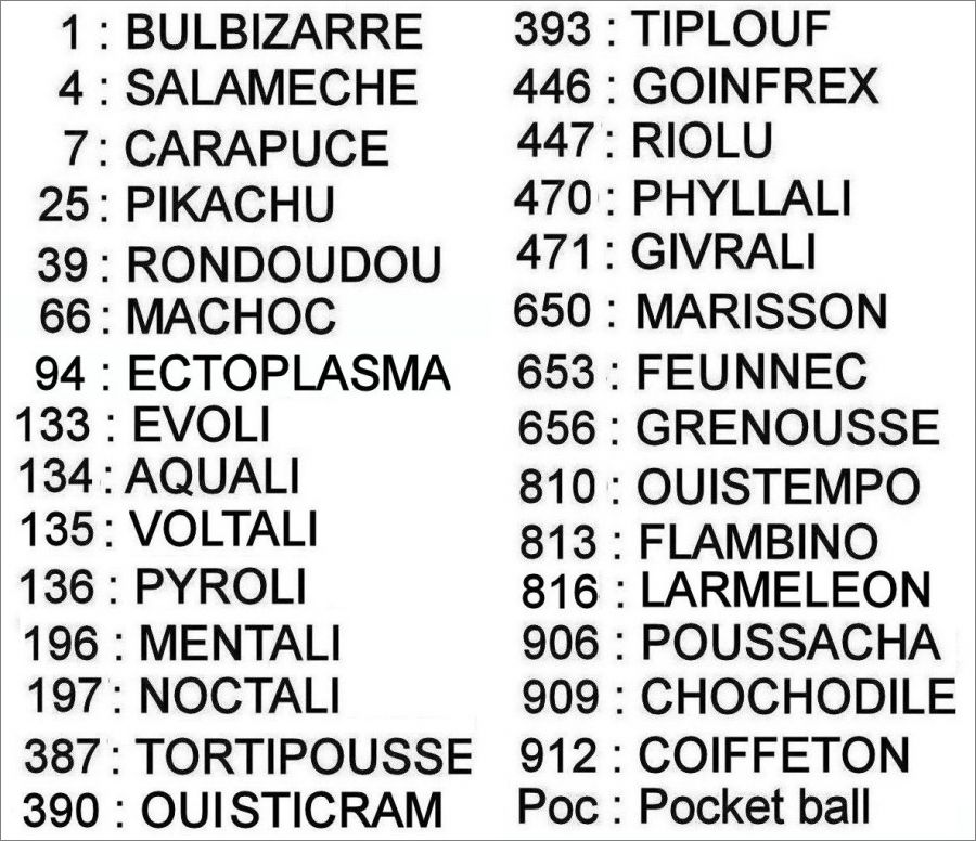 Pour le référencement on a pris le numéro du personnage Pokémon