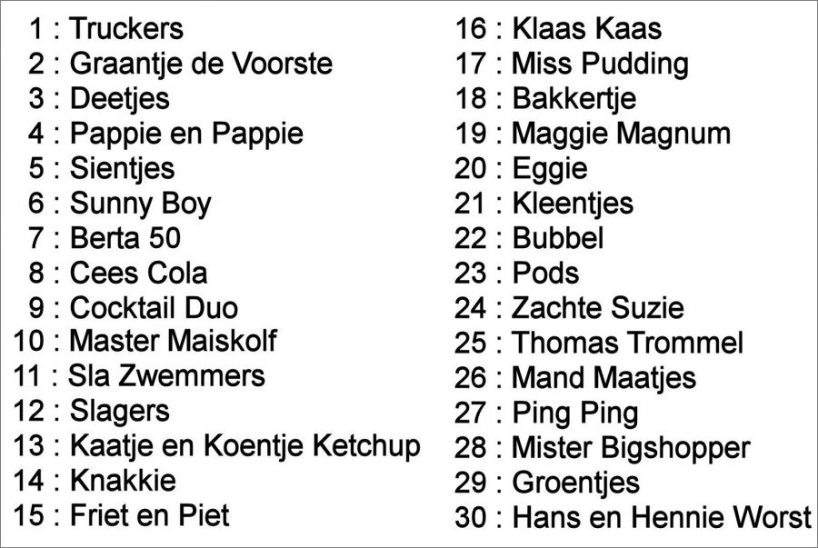 Jan Linders : 1 à 30 (suivre la numérotation sur l'image)