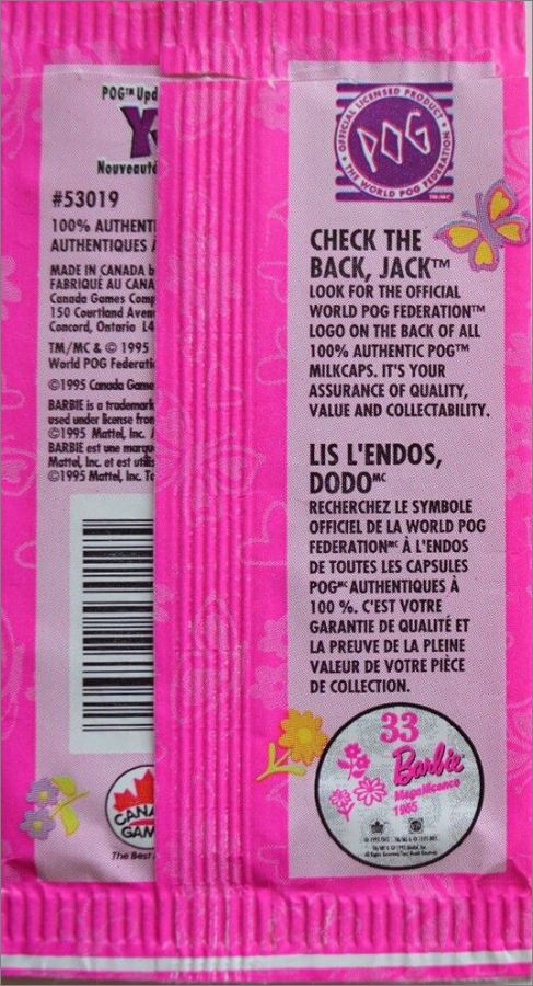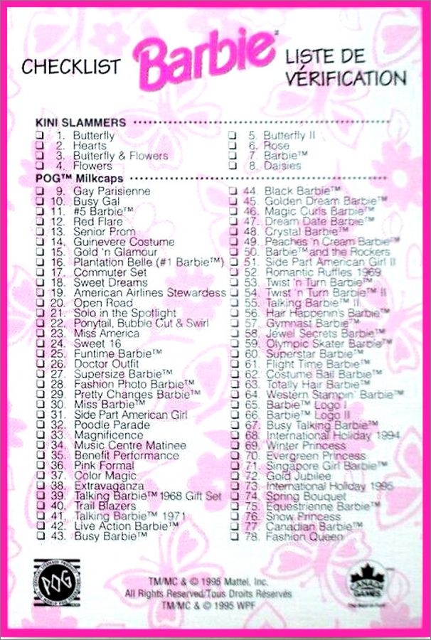 Barbie - 70 pogs + 8 kini Slammer WPF Canada Games - 1995