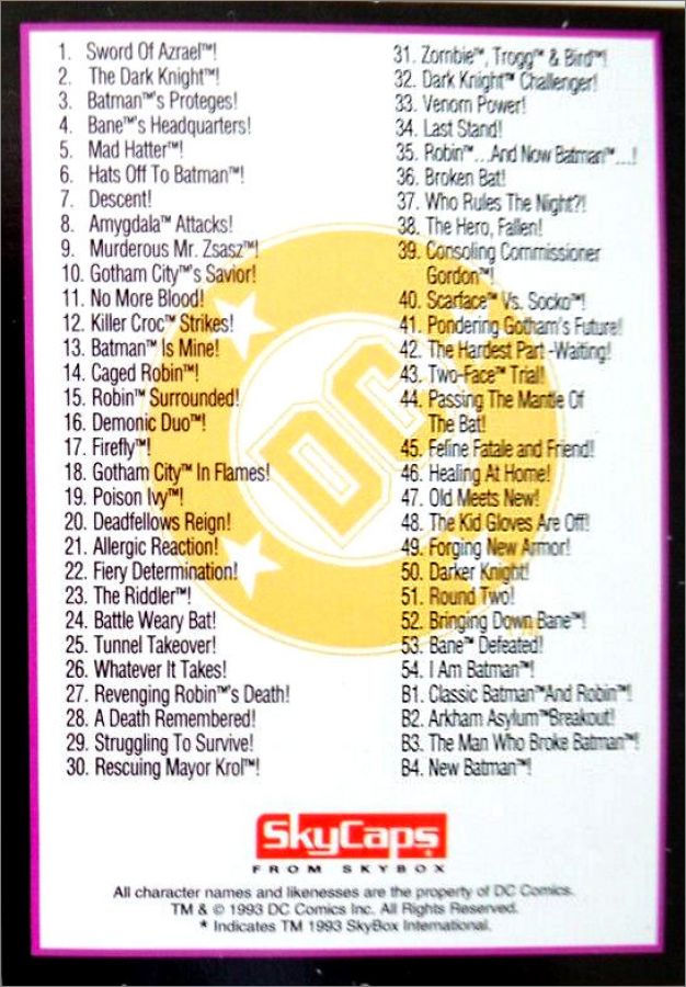 Batman Knightfall (DC Comics) 54 pogs + 4 B - Skycaps - 1993
