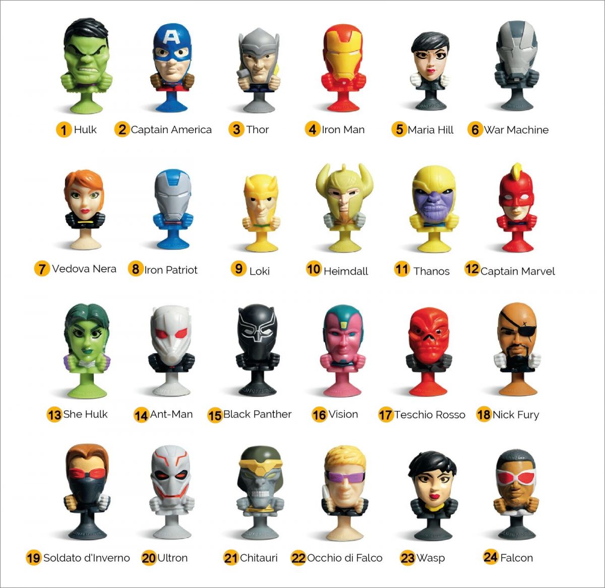 Figurines ventouse sorties uniquement en Italie dans les magasins Carrefour et Esso en 2016.
