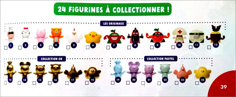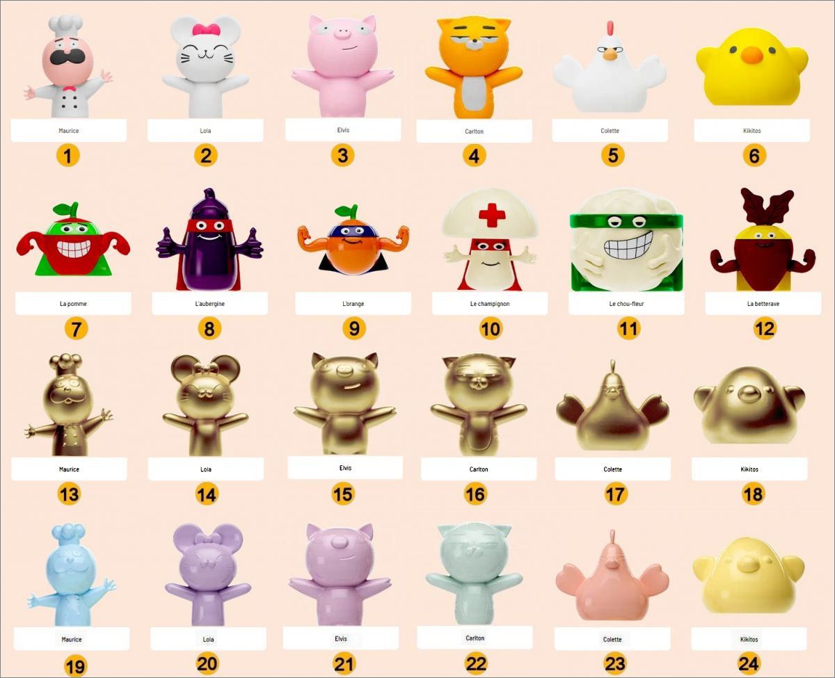 24 figurines à collectionner : elles te permettront de jouer au JEU DE COLETTE ou de décorer tes verres.