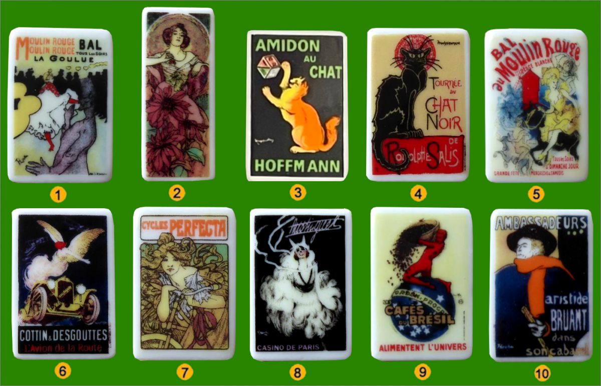 Série de 10 fèves d'après Alfons Mucha