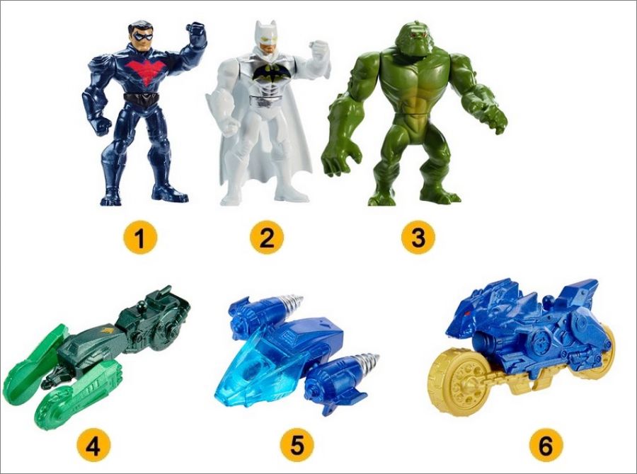 Mattel : 1 à 6 (Suivre la numérotation sur l'image)
