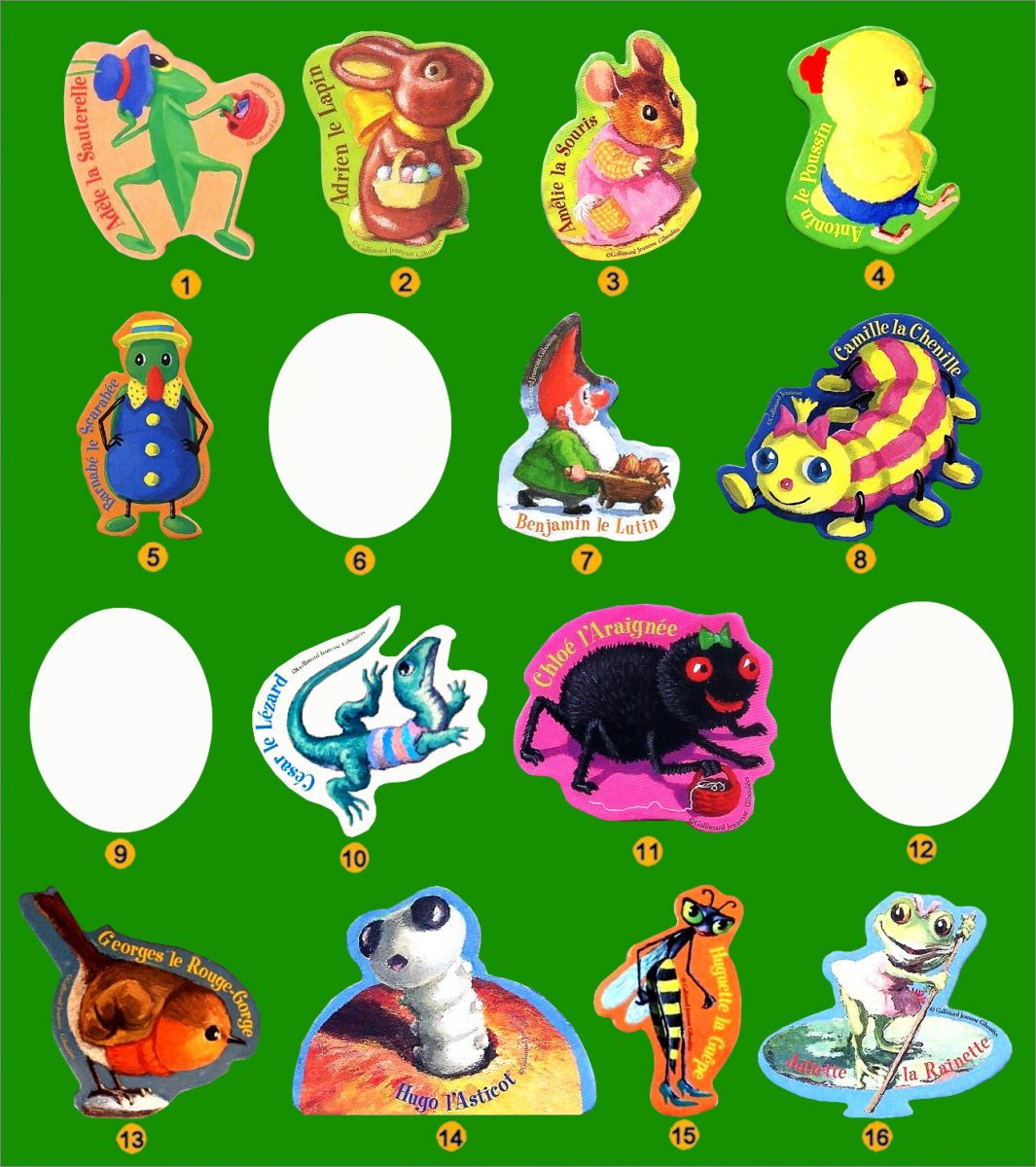 9 : Carole la Luciole = Car (pas de visuel)10 : César le Lézard = Ces