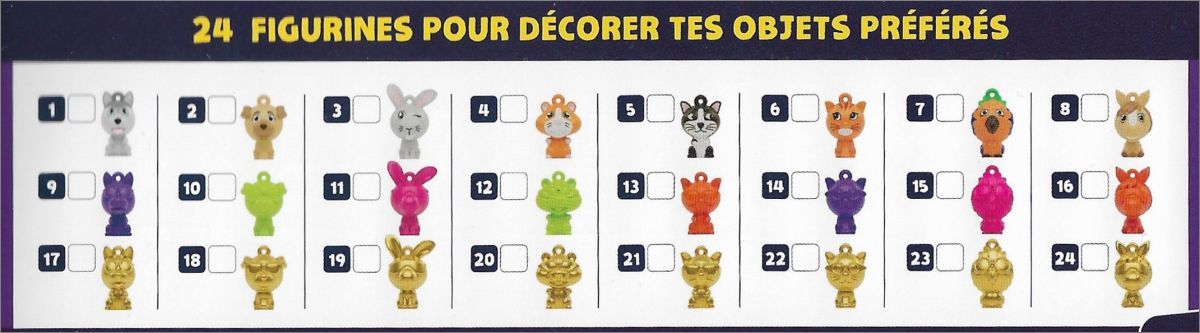24 figurines à collectionner : pour jouer avec le plateau de jeu présent dans l'album ou elles peuvent aussi être suspendues à ton sac ou à ta trousse