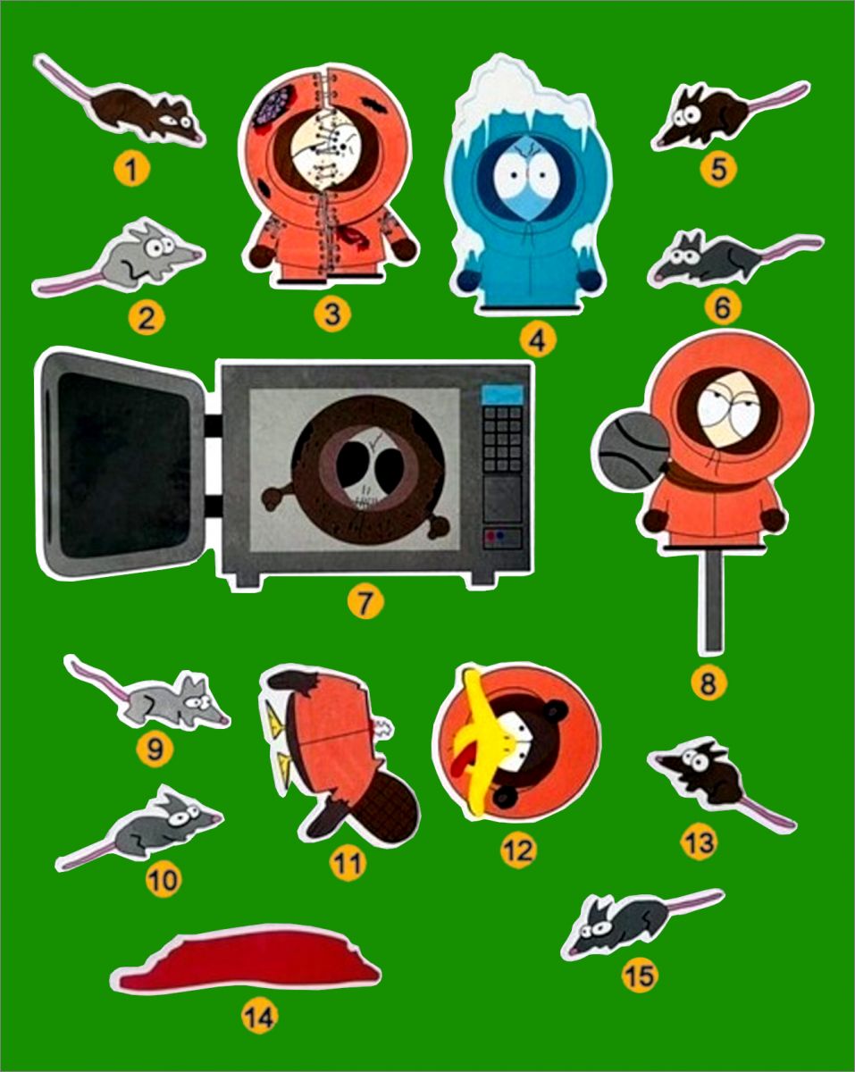Kenny - South Park - 1 planche de 15 Magnets - 1999