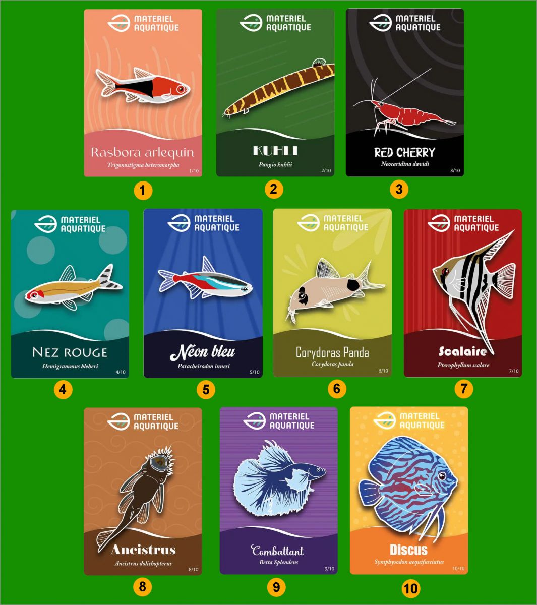 Matériel Aquatique : 1 à 10 (Suivre la numérotation sur l'image)