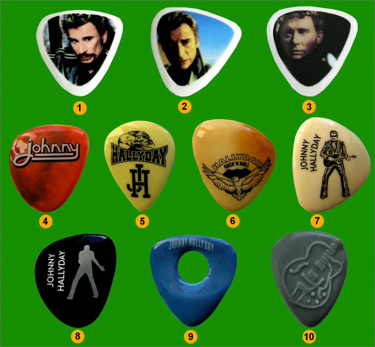 Johnny Hallyday médiators - 10 Fèves Brillantes - Prime 2020