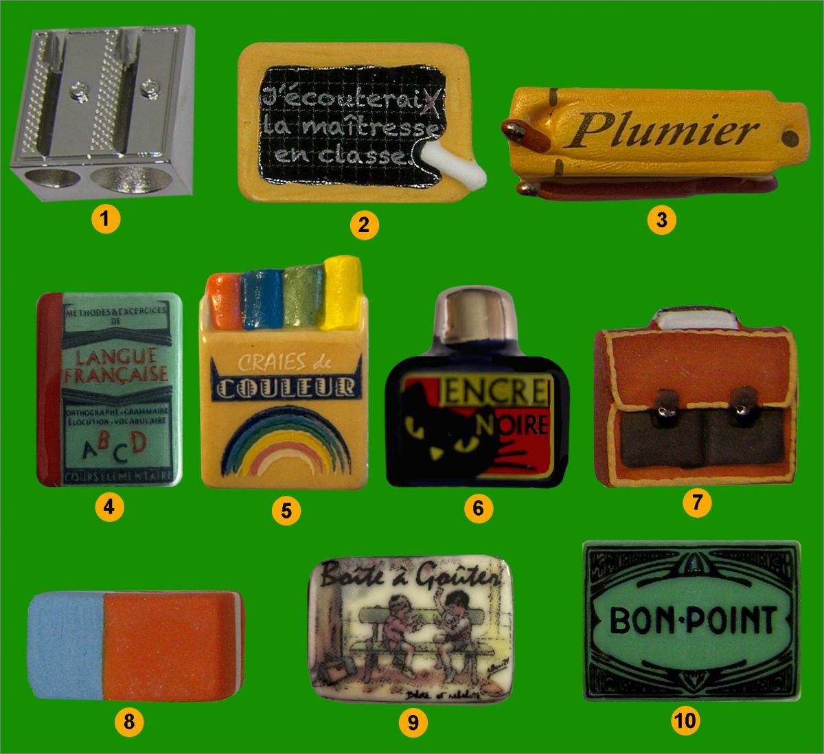 Série de 10 fèves sorties chez Alcara référence : AFF 07.2023