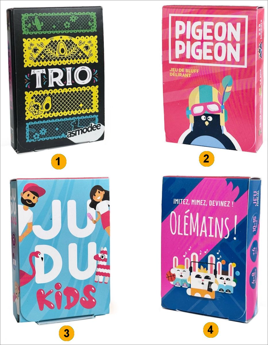Avec le Happy Meal™, découvrez 4 jeux de société ASMODEE à emporter partout : Trio, Pigeon Pigeon, Olémains et Judukids. Des jeux malins et pleins de bonne humeur pour rire, réfléchir et vous amuser ensemble!