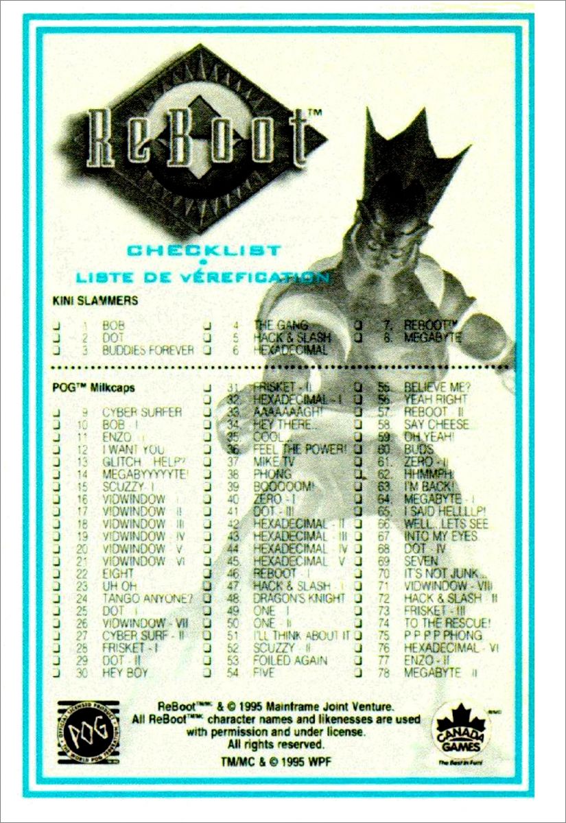Reboot - 70 pogs + 8 kini Slammer WPF Canada Games 1995