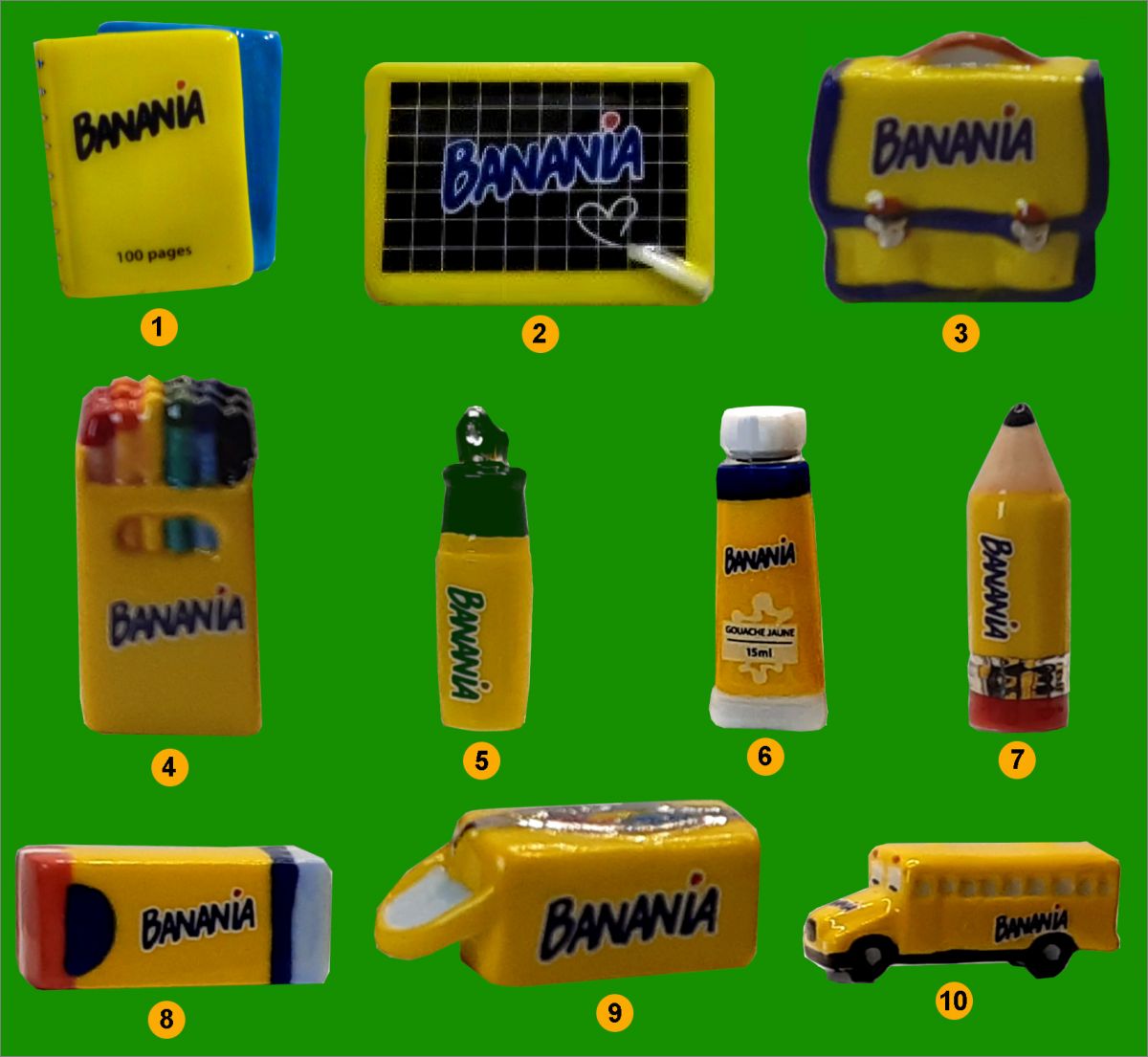 Banania : 1 à 10 (Suivre la numérotation sur l'image)