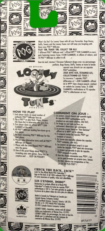 Looney Tune's - 70 pogs 8 kini Slammer WPF Canada Games 1995