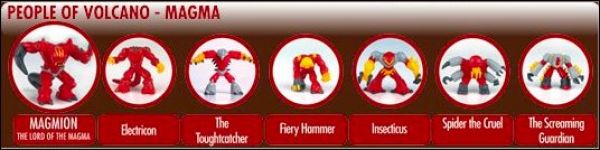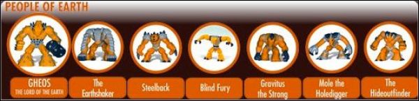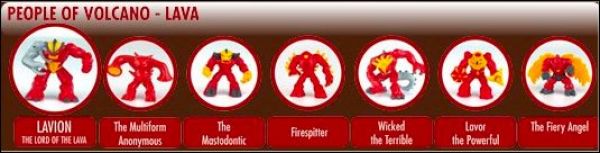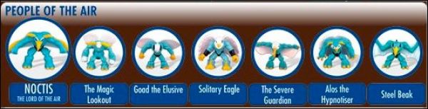 Peuple de la Terre = Ter1 à Ter7 Peuple de la Forêt = For1 à For7 Peuple des Océans = Ocea1 à Ocea7 Peuple de l'Air = Air1 à Air7 Peuple du Volcan Magma = VolM1 à VolM7 Peuple du Volcan Lave = VolL1 à VolL7