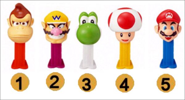 Pez / Nintendo: 1 à 5 (Suivre la numérotation sur l'image)