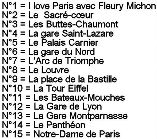 Fleury Michon : 1 à 15 (Suivre la numérotation sur l'image)
