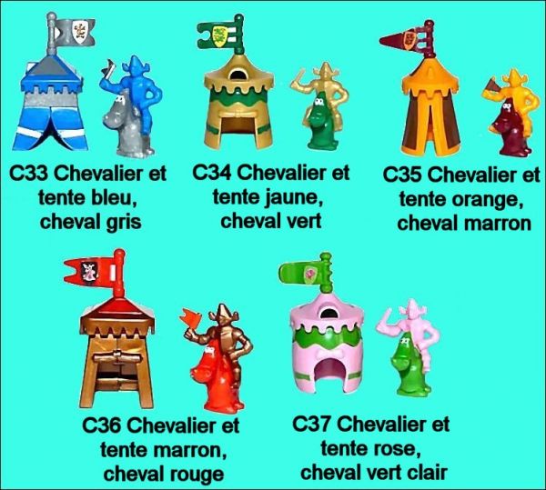 C37 : Chevalier et tente rose, cheval vert clair = 37
