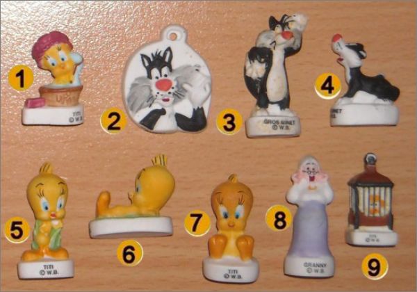 Titi et Gros Minet - 9 Fèves Brillantes - Marquées WB 98