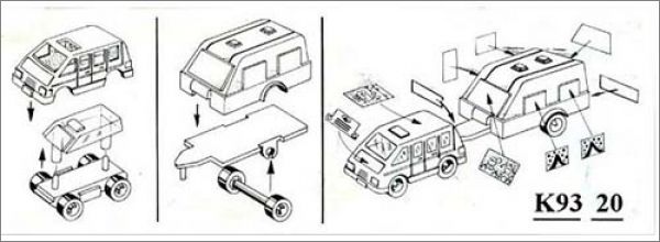 K93-20 : Voiture bleue tirant une caravane jaune = 20